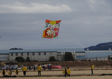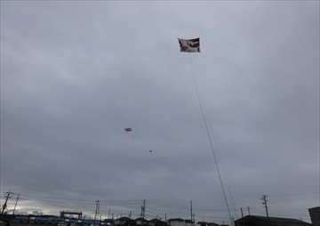 最強寒波到来のなか、みんな元気に凧を揚げました