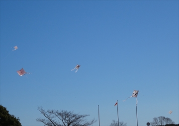 午後は自由凧揚げ。青空にたくさんの凧が揚がりました