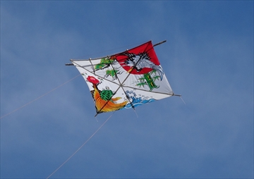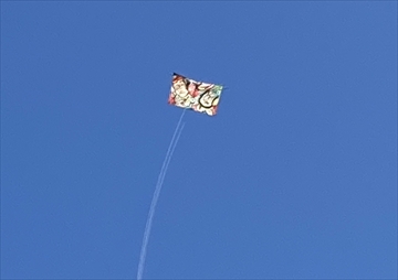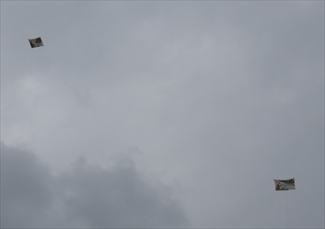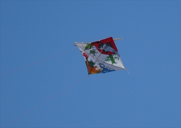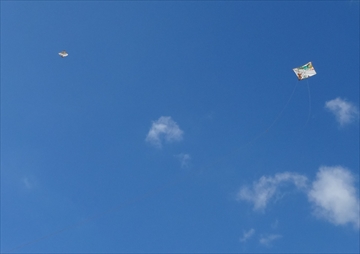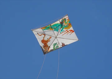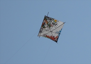 凧部屋の奥から久しぶりに引っ張り出してきた微風凧を揚げました