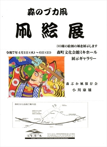 4月1日(火)〜6日(日)森町文化会館ミキホールで凧絵展が開催されるそうです
