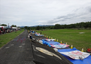 横幅3.2mの横長の凧がたくさん揚がるので見応えあります