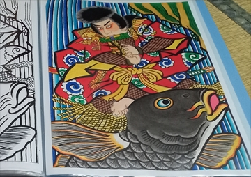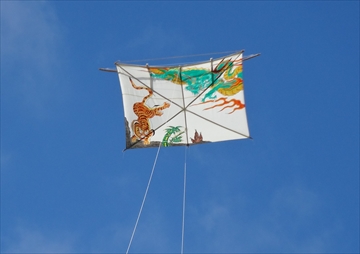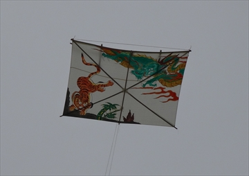 お師匠さんとかぶって、同じサイズの凧で絵も同じ龍虎