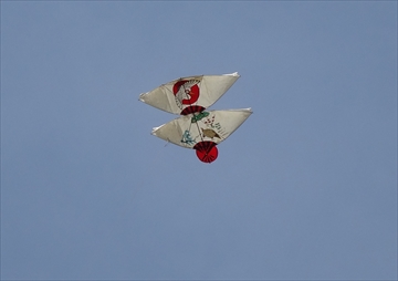 次々と青空に凧が揚がり糸切合戦が始まっていきます