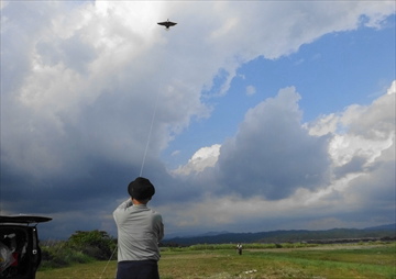 愛知県から前乗りしてくれた方が鳥の凧を揚げてくれました