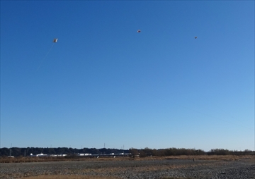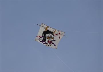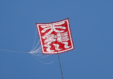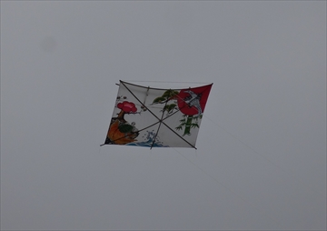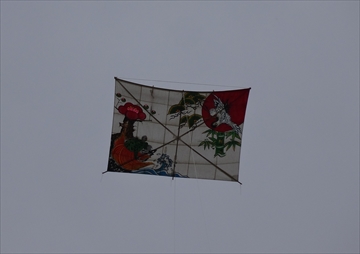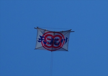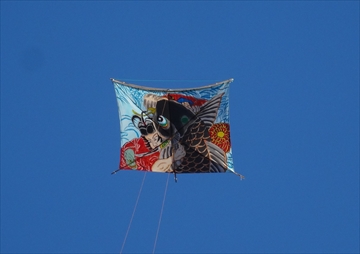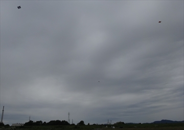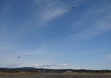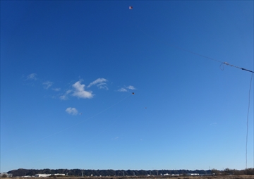 私は所用で揚げれなかったのですが、午後に遠めから凧揚げ場の上空を見上げると4枚の凧が揚がっていました