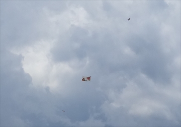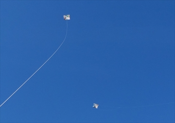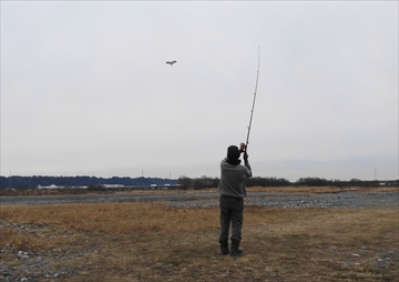 風が無くても、釣り竿で凧を揚げてしまう方もいます