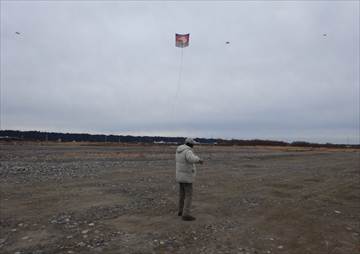 台風15号の影響で凧揚げ場が水没しましたが、今日は水が引いて凧揚げを楽しめました