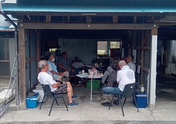 今日は月例会でしたが、雨だったので、会員の家の小屋を借りて、先日の展示会の反省会を行いました