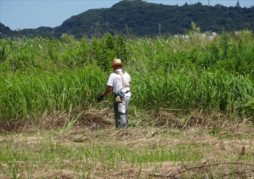 いつも元気な会の長老が今日も草刈りをしてくれました