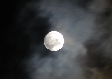 最初は曇っていましたが、時間が経つにつれて雲の合間から満月が見えました。南の方角から花火も見えました。