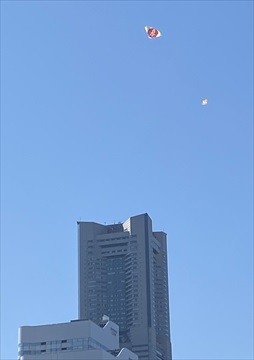 今日は朝に天気予報が変わり、午前中は雨が降りましたが、午後から晴れていい風でした。江戸凧とぶか凧です。なかなか一緒に見ることはできないので貴重な写真ですね