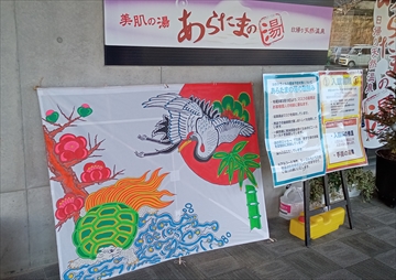 浜名区四台地にある「あらたまの湯」の出口に凧を飾ってもらっています