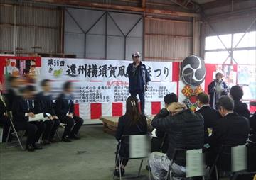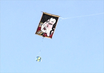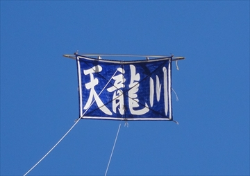 午後から飛竜まつりの会場で、飛竜まつりの凧の試し揚げを見学