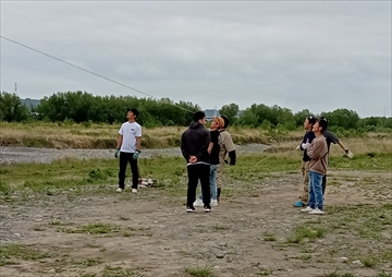 飛竜まつりに参加する町内の方々が凧揚げの練習に来てくれました