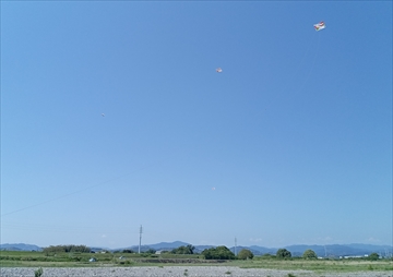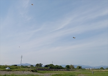 僕の凧はいつも通り墜落を繰り返し、凧の部品をいくつか壊し、ずっと河川敷を走り回っていました(^^;)