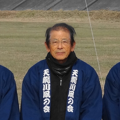 23歳の時、甥の誕生祝いにと1.5M四方の浜松凧を作った。子どもの頃によく凧を自作しては家の周りで揚げたから、素人ながらにも立派な祝い凧ができて喜んでもらえた。その後は仕事の関係で一時遠のいてしまったが、50歳の時に浜北大橋の上流で大きな「ぶか凧」が揚がっているのを見掛け、浜松凧以外でこんなに大きな凧は見たことがないと衝撃を受けて写真を撮らせてもらった。すぐに写真を基にして「ぶか凧」を作って揚げたが上手く揚がらなかった。それから、試行錯誤を繰り返し、10日後になんとか揚げることができた。子どもの頃の心地よい感触と楽しさが蘇った瞬間だった。ぶか凧から響くウナリの爽快な音にも魅力を感じて、ますます夢中になっていった。中山さんと知り合ったのはその頃で、浜北ぶか凧保存会に入会し、作る凧は次々と大きくなり、上手く揚がったときの嬉しさも大きくなっていった。その頃は、河川敷で凧揚げ大会ともなればとても賑やかで、広報誌に載ることも珍しくなかった。