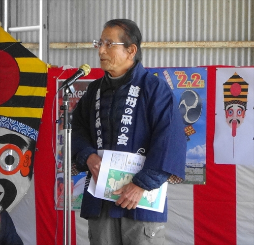 ↓凧揚げ大会で挨拶をする裕佑さん